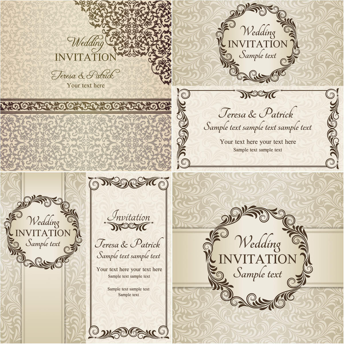 Beige Wedding invitations vector