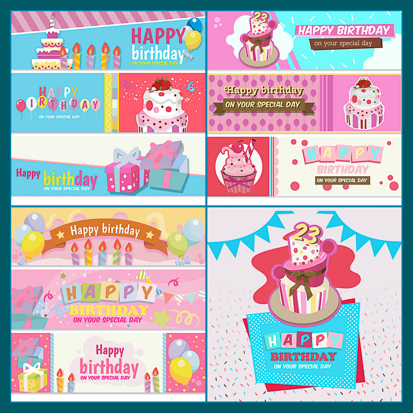 This Happy Birthday banner vector features a festive and colourful design with a delicious birthday cake as the central element. The cake is decorated with candles, icing, and confetti, set against a bright background filled with celebratory details like bunting, balloons, and sparkles. The typography is cheerful and playful, conveying a joyful mood perfect for birthday party invitations, greeting cards, digital banners, and social media posts. This vector is ideal for adding a fun and vibrant touch to any birthday-themed design.